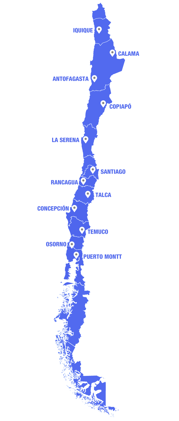 Somos un aliado estratégico en todo Chile. Nuestro compromiso es poner a disposición de nuestros clientes soluciones inmediatas en las áreas donde pocos llegan. Esto nos permite ofrecer respuestas rápidas y garantizadas, independientemente de la ubicación, asegurando que tu operación nunca se detenga.